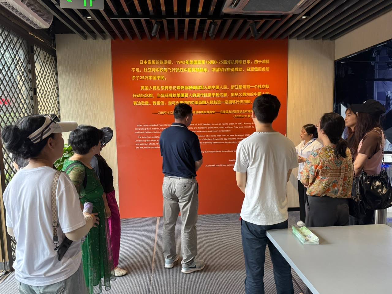 杜立特行动纪念馆自2018年开放以来,致力于集中展示二战期间著名的“杜立特突袭行动”及其后续在衢州展开的大救援历史,生动呈现由此缔结的中美人民深厚友谊。在馆内,调研小分队在讲解员引导下,系统学习了“我们在衢州见”“衢州营救”“血色曙光”“友谊桥梁”等主题展陈,深入了解了“杜立特救援行动”的全过程。队员们还仔细观看了展出的B-25轰炸机残骸、机组人员徽章、《解放日报》报道等大量珍贵史料和实物,身临其境地感受那段战火纷飞年代里两国人民守望相助的感人历史。