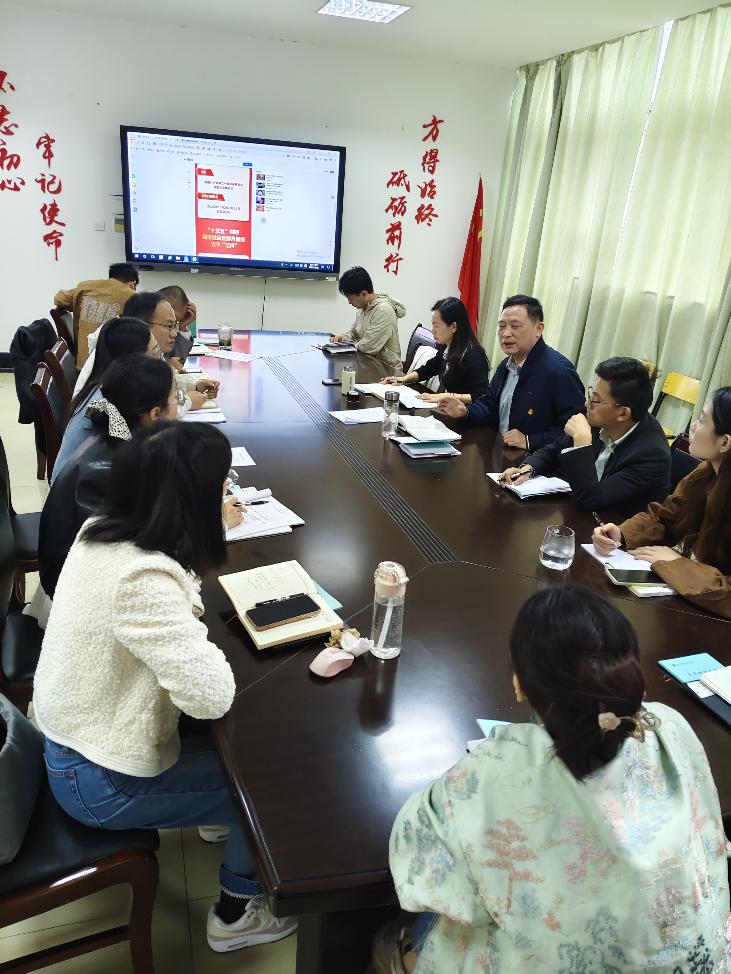 党支部书记邵方益领学传达党的二十届四中全会精神。全体党员重点围绕全会关于以中国式现代化全面推进强国建设、民族复兴伟业的重要论述展开研读,深刻领会“十五五”时期作为基本实现社会主义现代化关键阶段的重大意义。